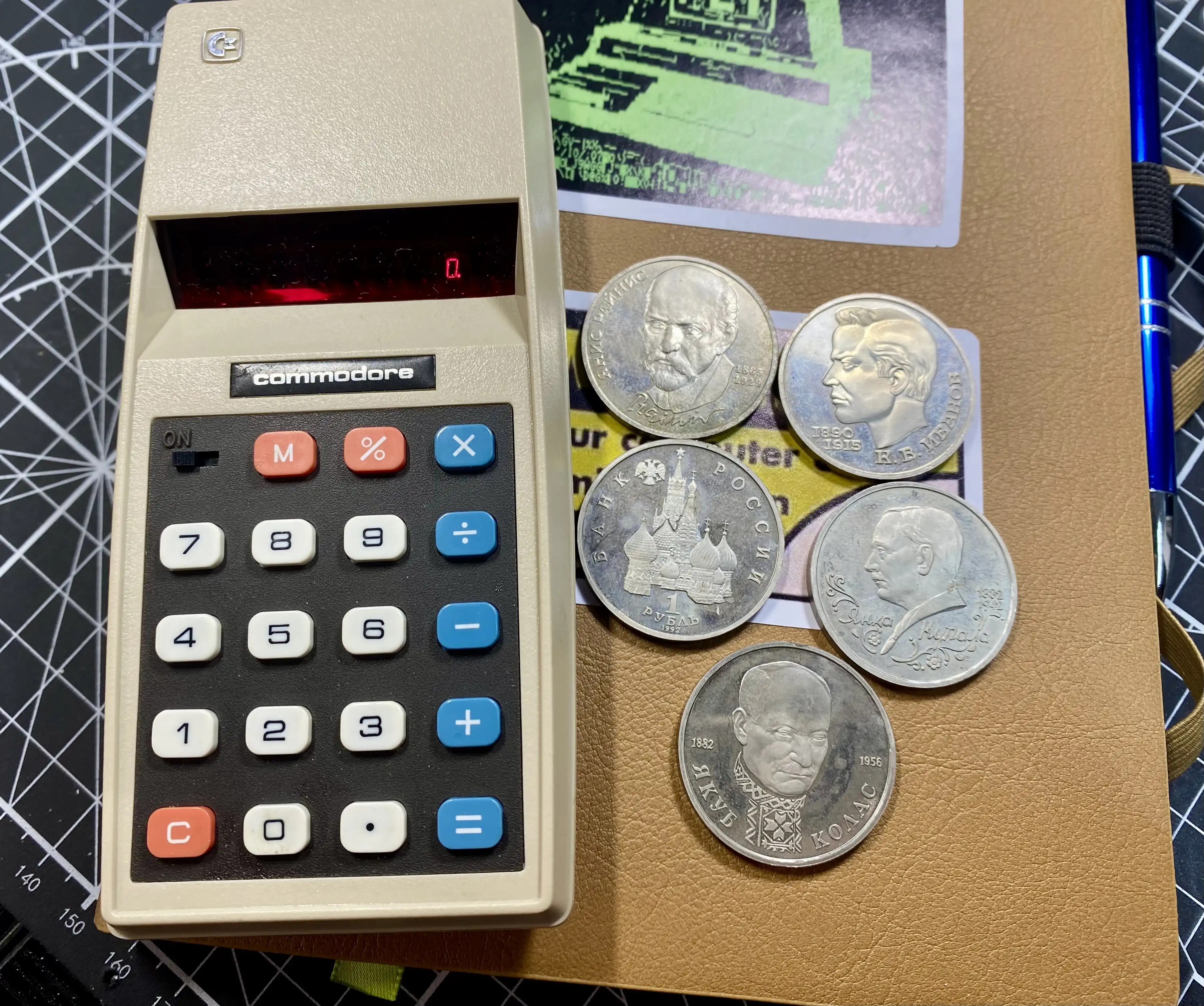 I found some coins I brought back from a trip to Moscow in 1992 and used my Commodore calculator to estimate their current value.