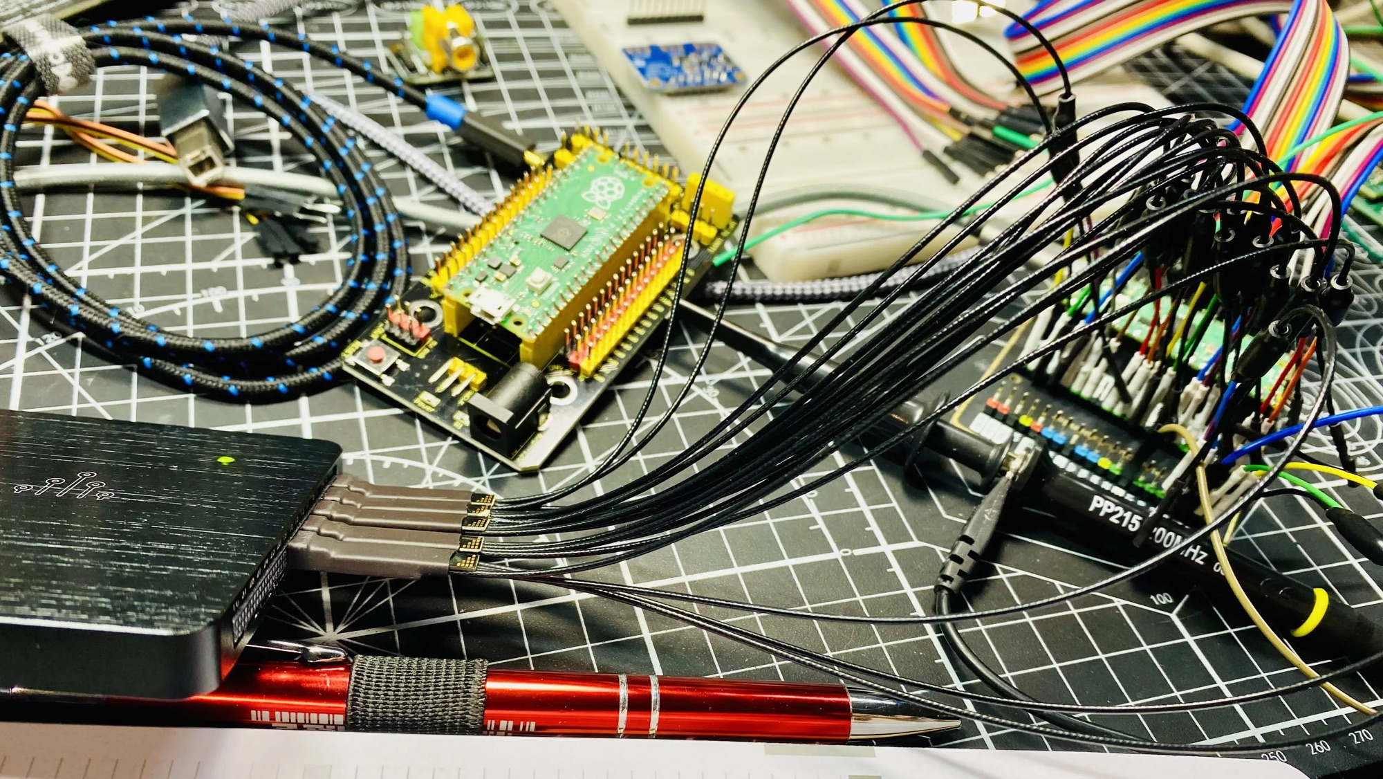 This Pico breakout board mirrors every pin. One side is my I/O connections and I’ve got the mirrors connected to my logic analyzer. Kinda great.