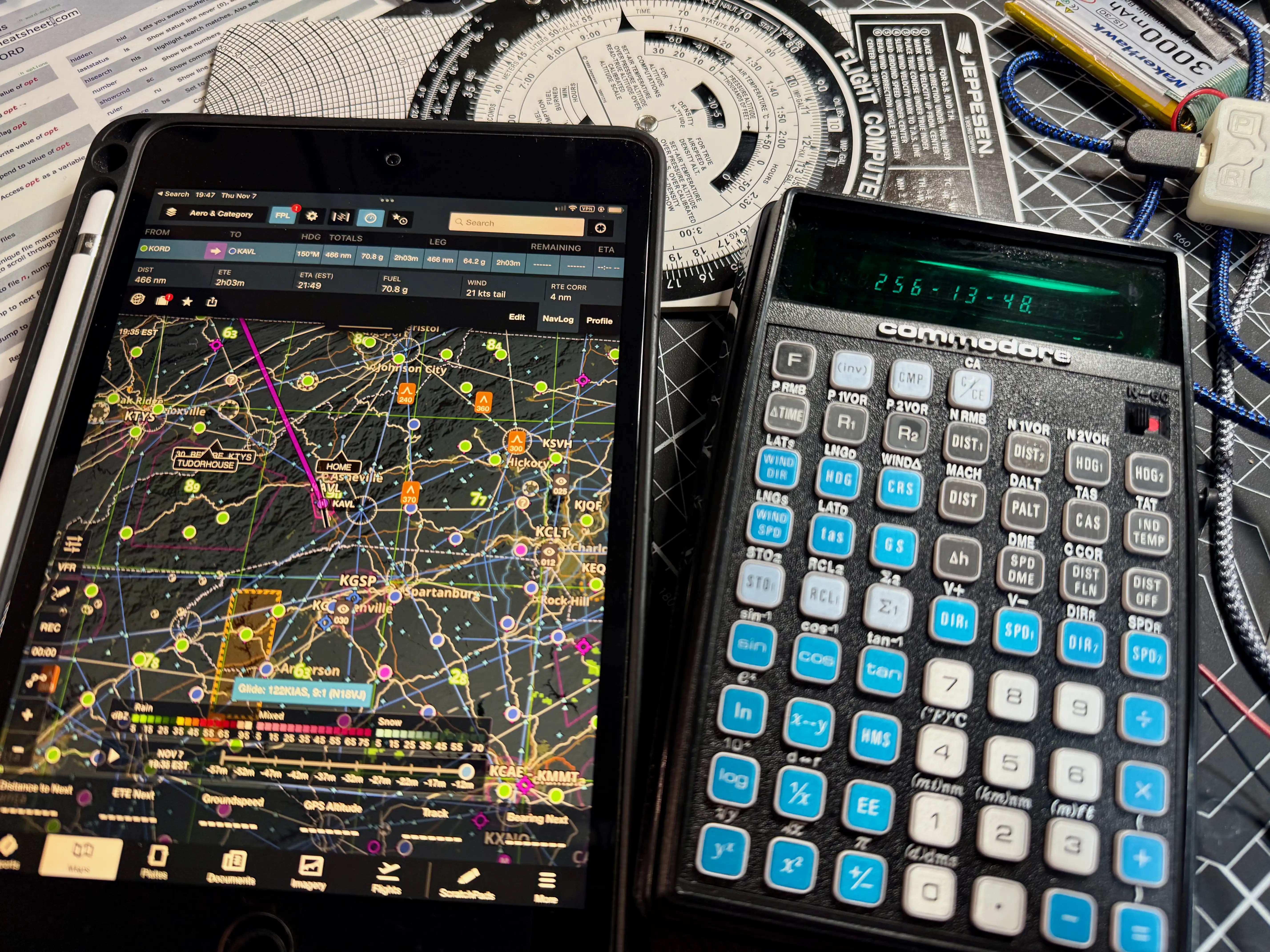 I’ve used ForeFlight on an iPad Mini for all my flight planning for years. BUT, did you know that in 1976, Commodore had one of the first handheld digital flight computers? Mine still works, and it’s battery-powered. Never know when you need a backup ;-)
