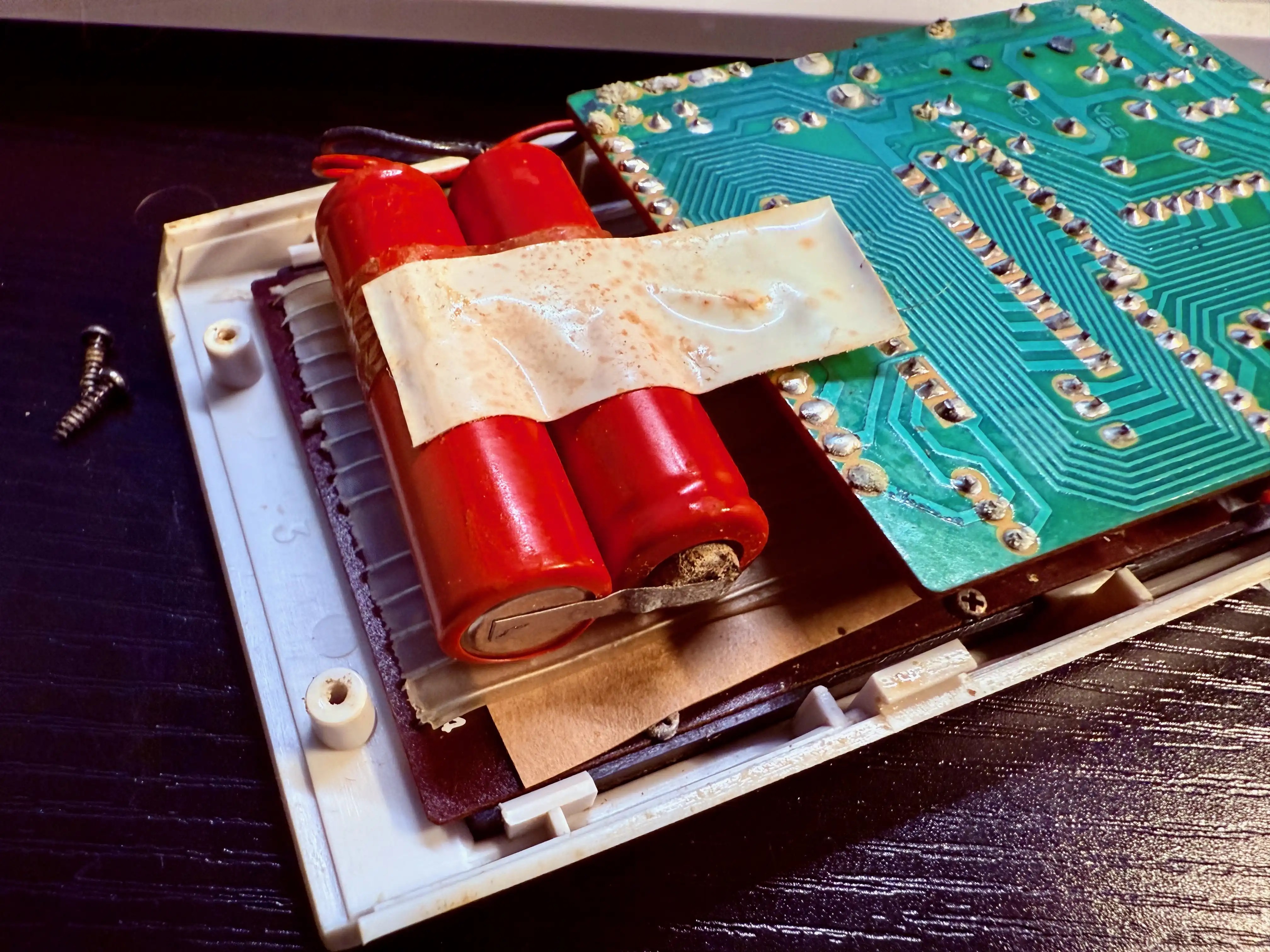 I'm sure this is fine. Batteries in a Commodore calculator from 1975. It'll buff out ;-)
