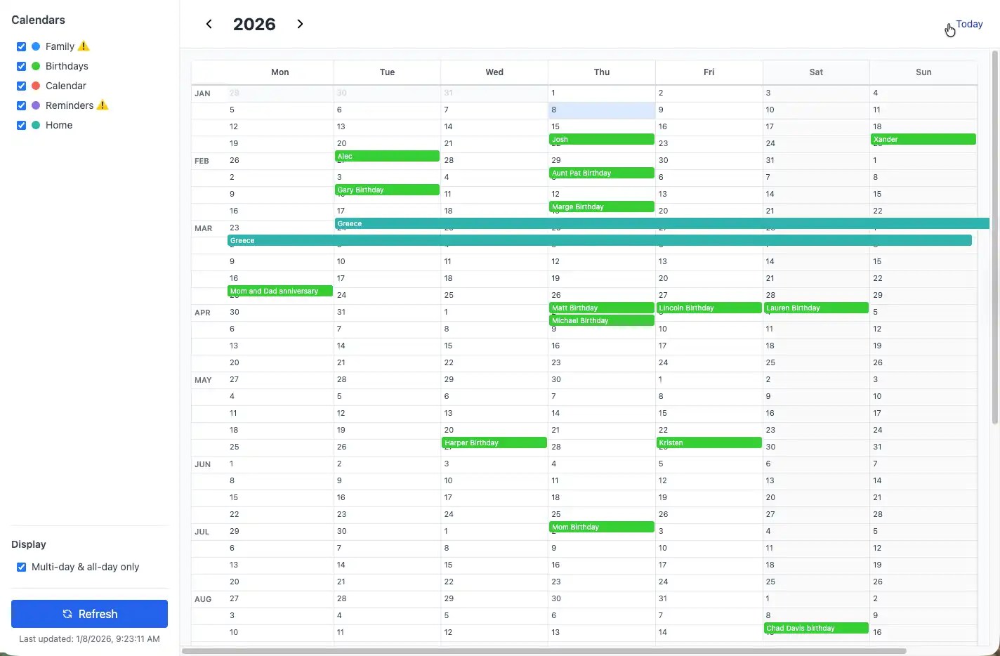Added a view option to toggle all-day and multi-day events only.